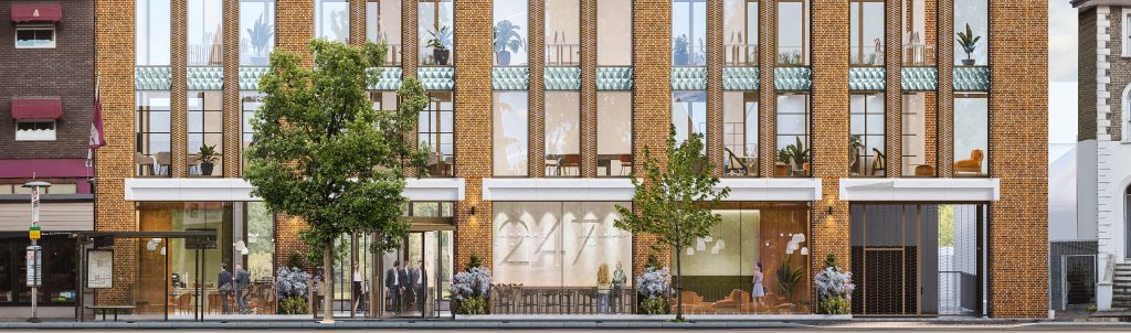 Diego and Cris have been onsite testing the colours for the facience on the facade of The Broadway Wimbledon. The design takes inspiration from local Arts and Crafts details, to create a robust, engaging facade with a mix of materials. The building will provide 46,000 sq ft of commercial working areas, with co-working space on the ground and lower ground floors and light filled offices above.
